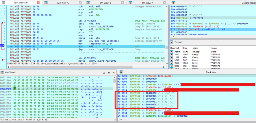 - Avk.dll uses DJB2-based API hashing.